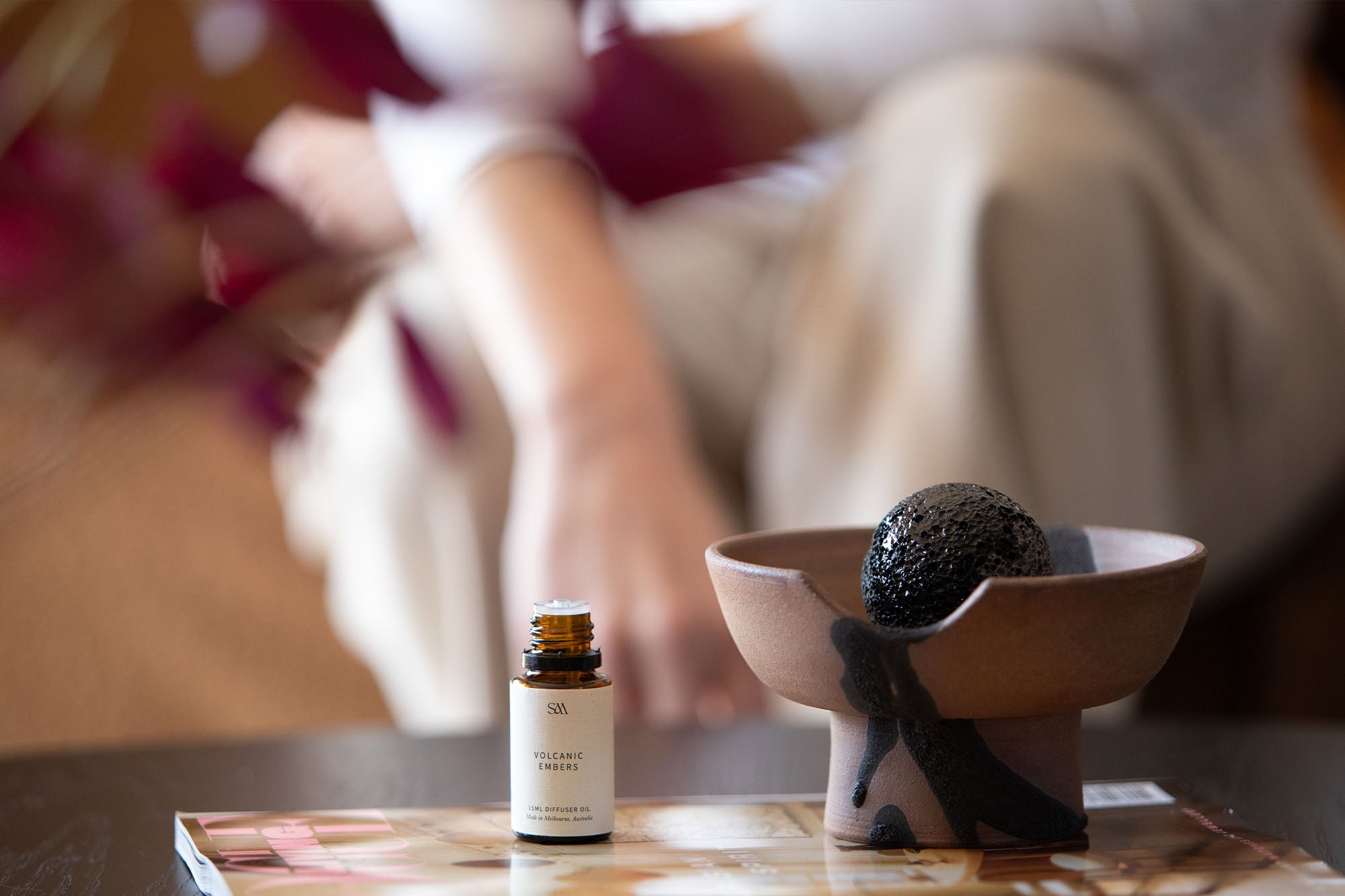 A unique statement collection diffuser and candle with volcanic rock glaze handmade in Melbourne from the highest quality luxury fragrance oils.