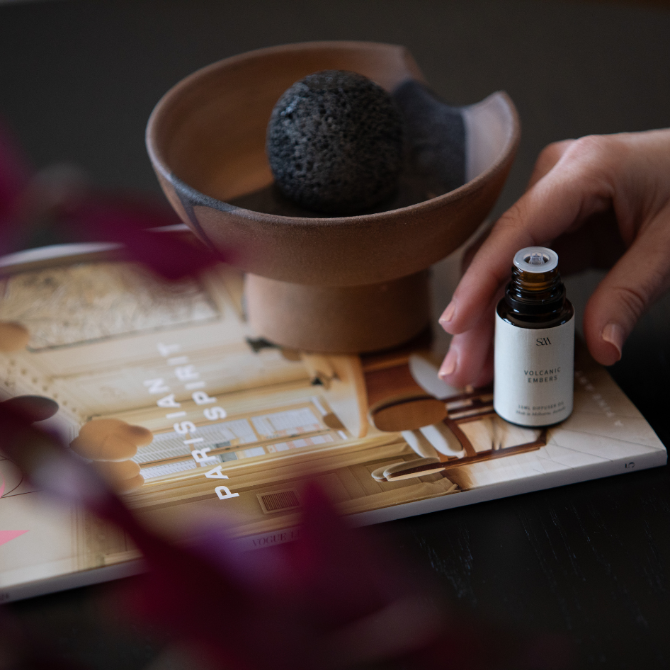 A unique statement collection diffuser and candle with volcanic rock glaze handmade in Melbourne from the highest quality luxury fragrance oils.