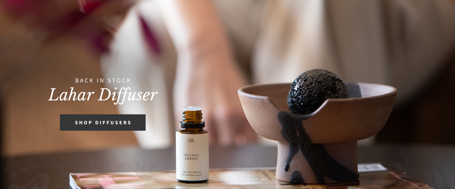 A unique statement collection diffuser and candle with volcanic rock glaze handmade in Melbourne from the highest quality luxury fragrance oils.
